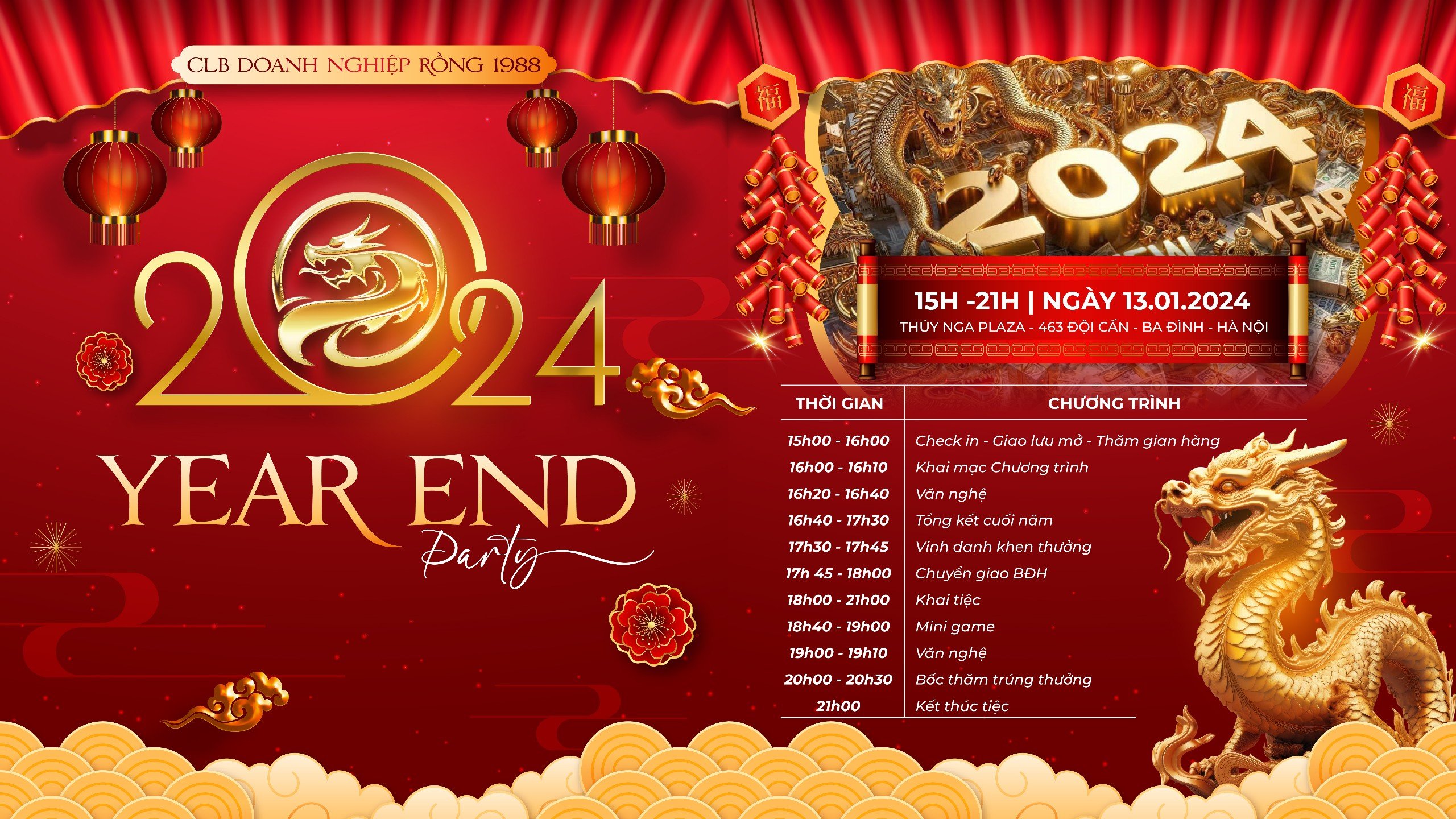 CLB DOANH NGHIỆP RỒNG 1988 trân trọng mời bạn tham dự: DẠ TIỆC TẤT NIÊN Thời gian: 15h ngày 13/1/2024 Địa điểm: 463 Đội Cấn ...